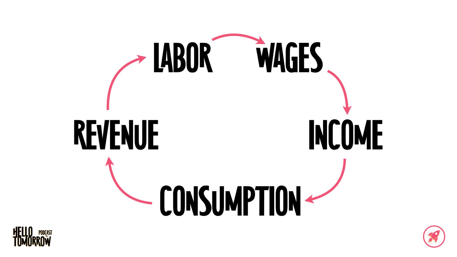 Labor → wages → income → consumption → revenue… and then back around again.