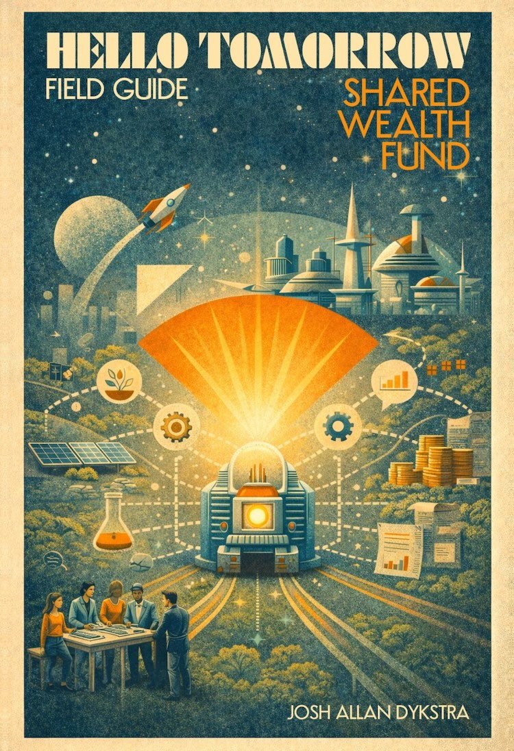 HELLO TOMORROW FIELD GUIDE SHARED WEALTH FUND This Field Guide is about acting early, calmly, and together. It’s 7 practical actions that ordinary people like us can do to help make an A.I.-based Shared Wealth Fund real… now. DOWNLOAD PDF (3MB)